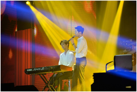 韩国艺人朴宝剑作为特别及粉丝来到现场为宋仲基助阵,调皮的仲基欧巴识破预谋惊喜,并且故意安排二次出场“表露惊讶”。随后仲基欧巴邀朴宝剑弹琴伴奏,送上《太后》的主题曲《少女》,两人第一次的合作可谓默契连连!